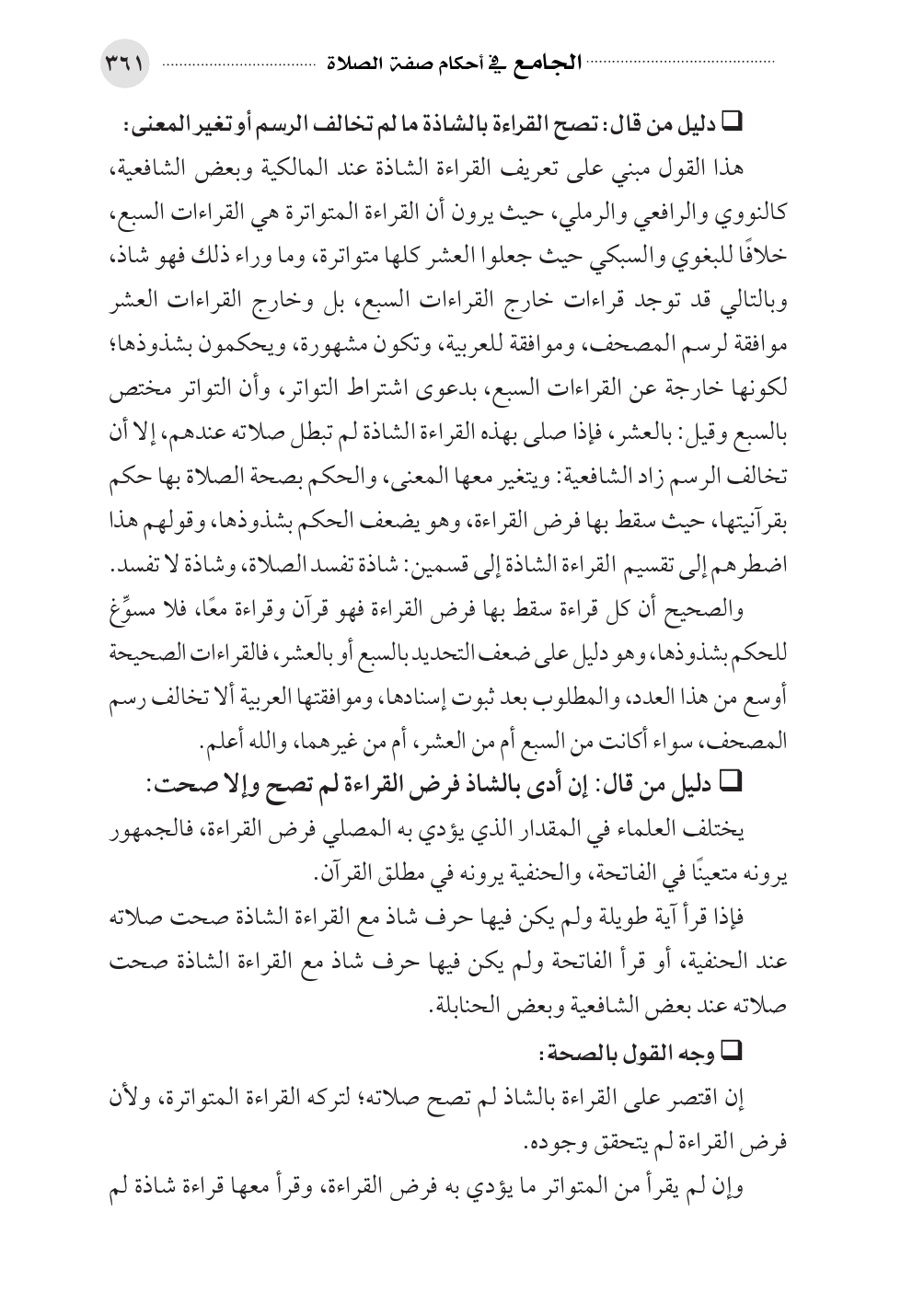 * دليل من قال: إن أدى بالشاذ فرض القراءة لم تصح وإلا صحت: