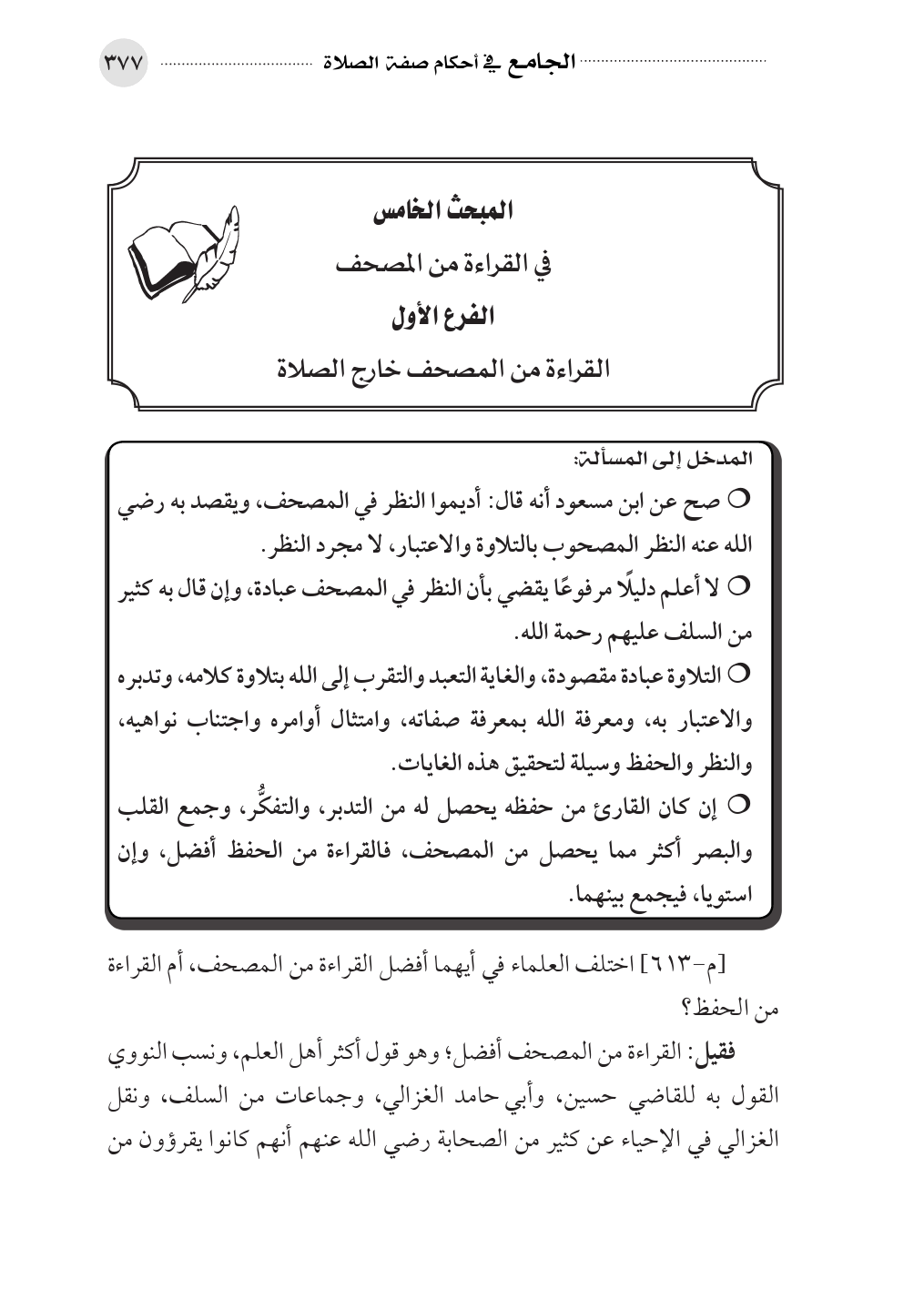 الفرع الأول القراءة من المصحف خارج الصلاة