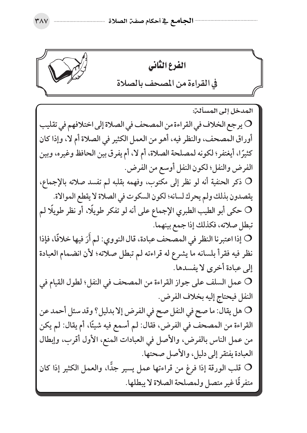 الفرع الثاني في القراءة من المصحف بالصلاة