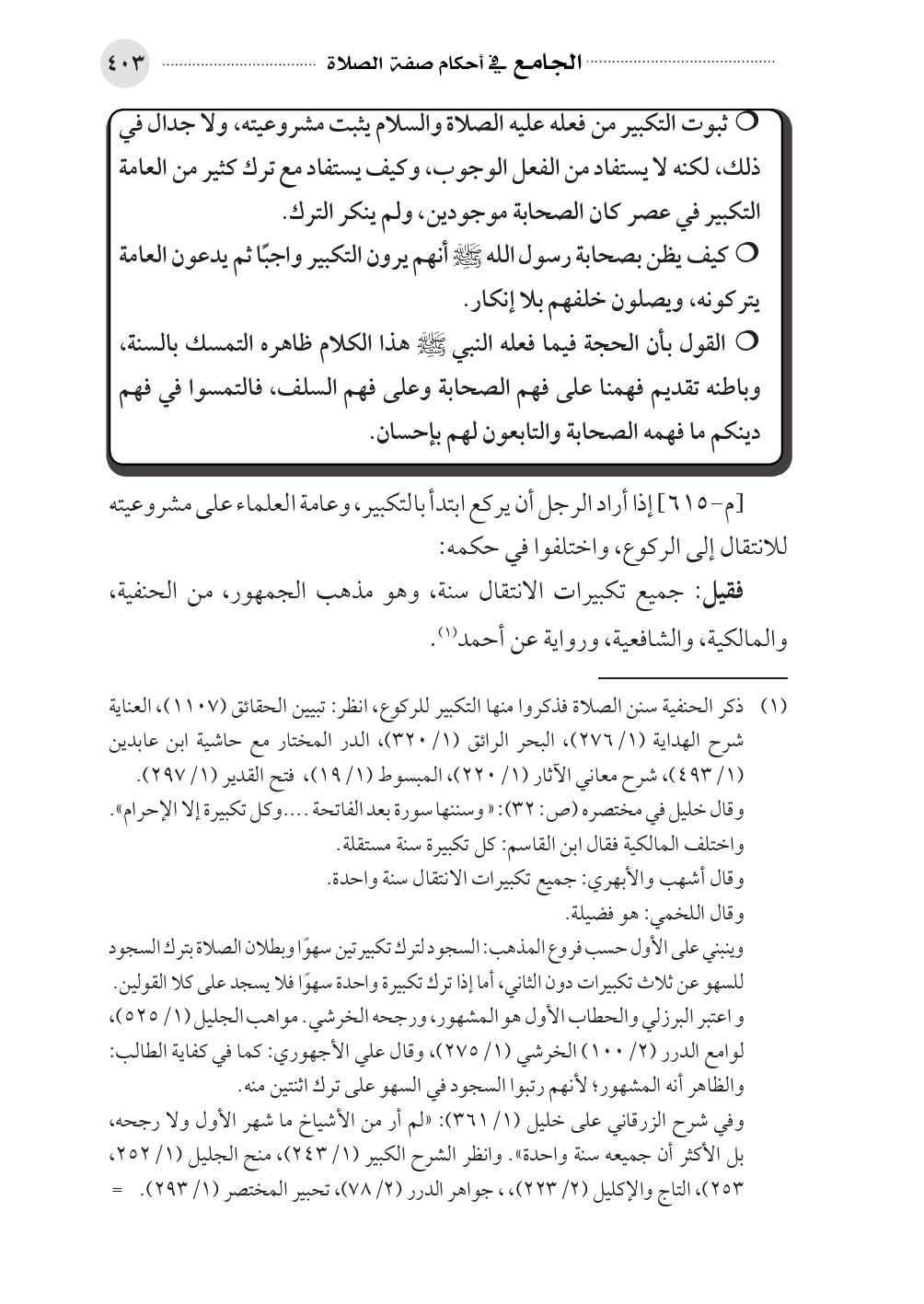 فقيل: جميع تكبيرات الانتقال سنة، وهو مذهب الجمهور، من الحنفية، والمالكية، والشافعية، ورواية عن أحمد (¬١).