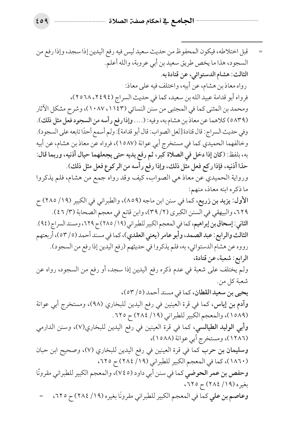 الثالث والرابع: عبد الصمد، وأبو عامر (يعني العقدي)، كما في مسند أحمد (٥/ ٥٣)، أربعتهم رووه عن هشام الدستوائي، به، فلم يذكروا في حديثهم (رفع اليدين إذا رفع من السجود).