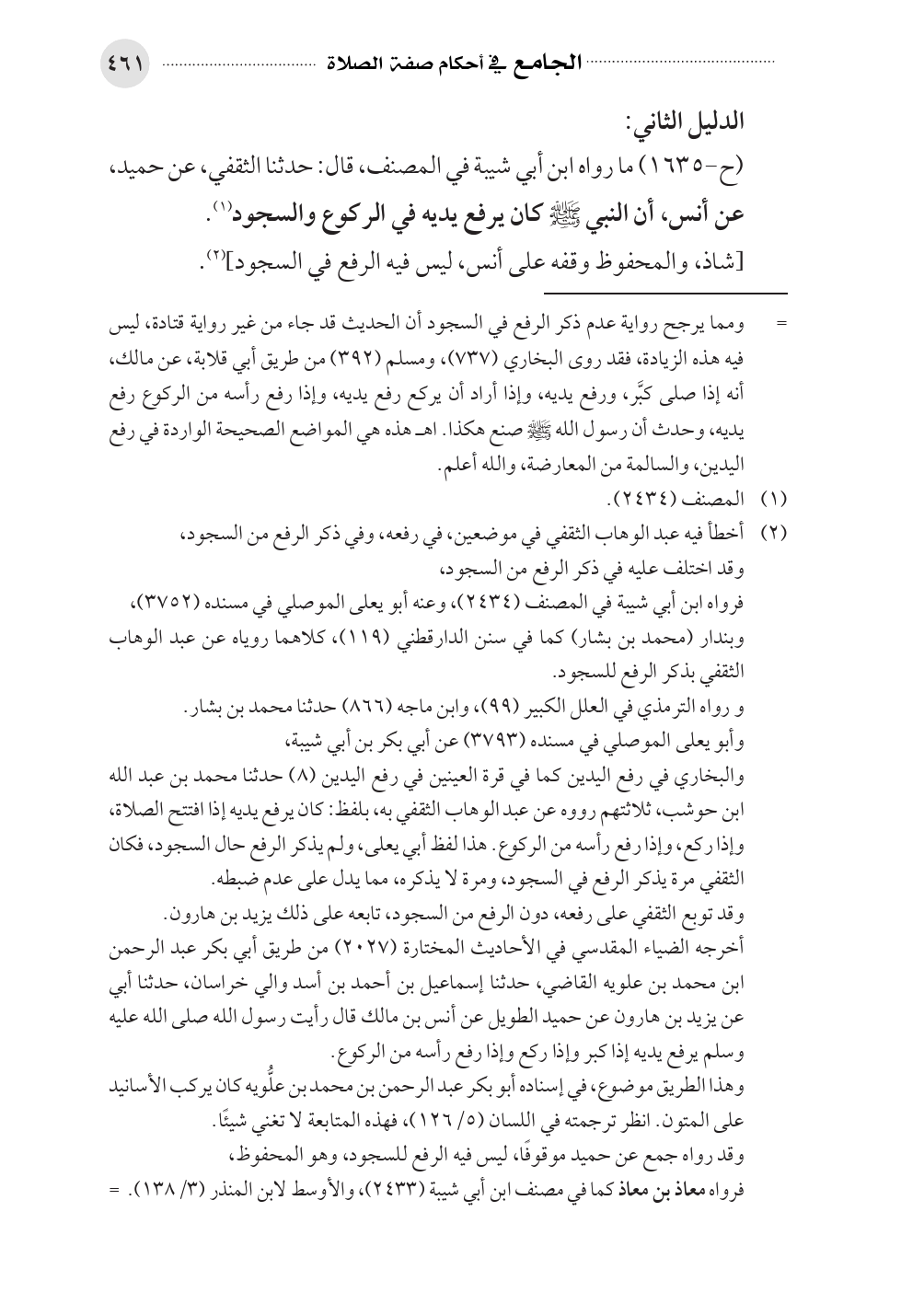 (¬٢). أخطأ فيه عبد الوهاب الثقفي في موضعين، في رفعه، وفي ذكر الرفع من السجود،
