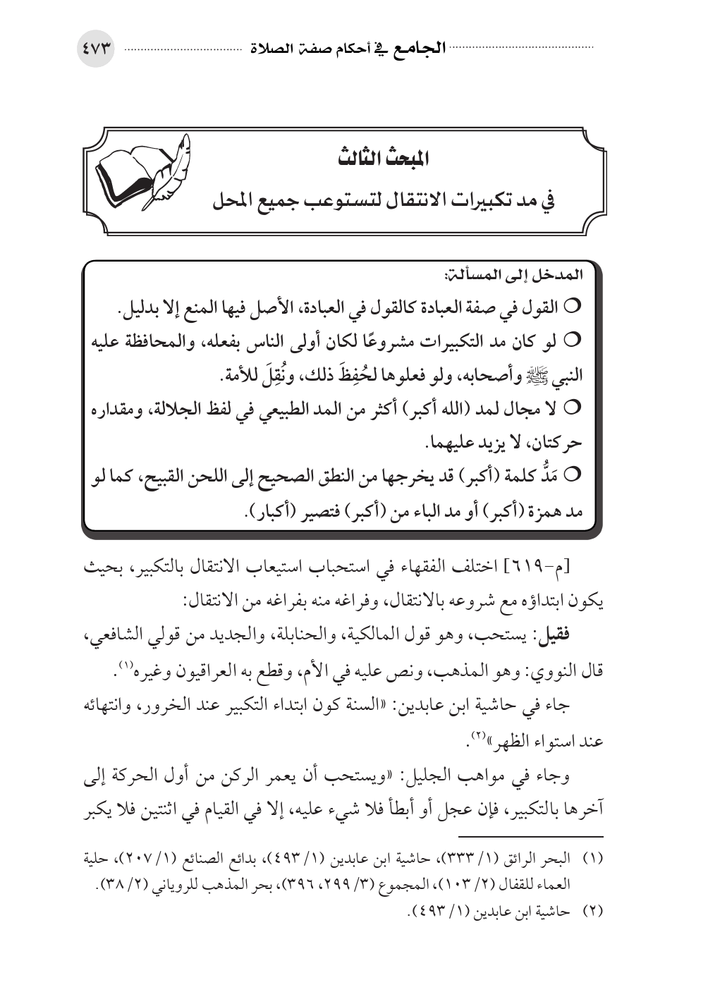 المبحث الثالث في مد تكبيرات الانتقال لتستوعب جميع المحل