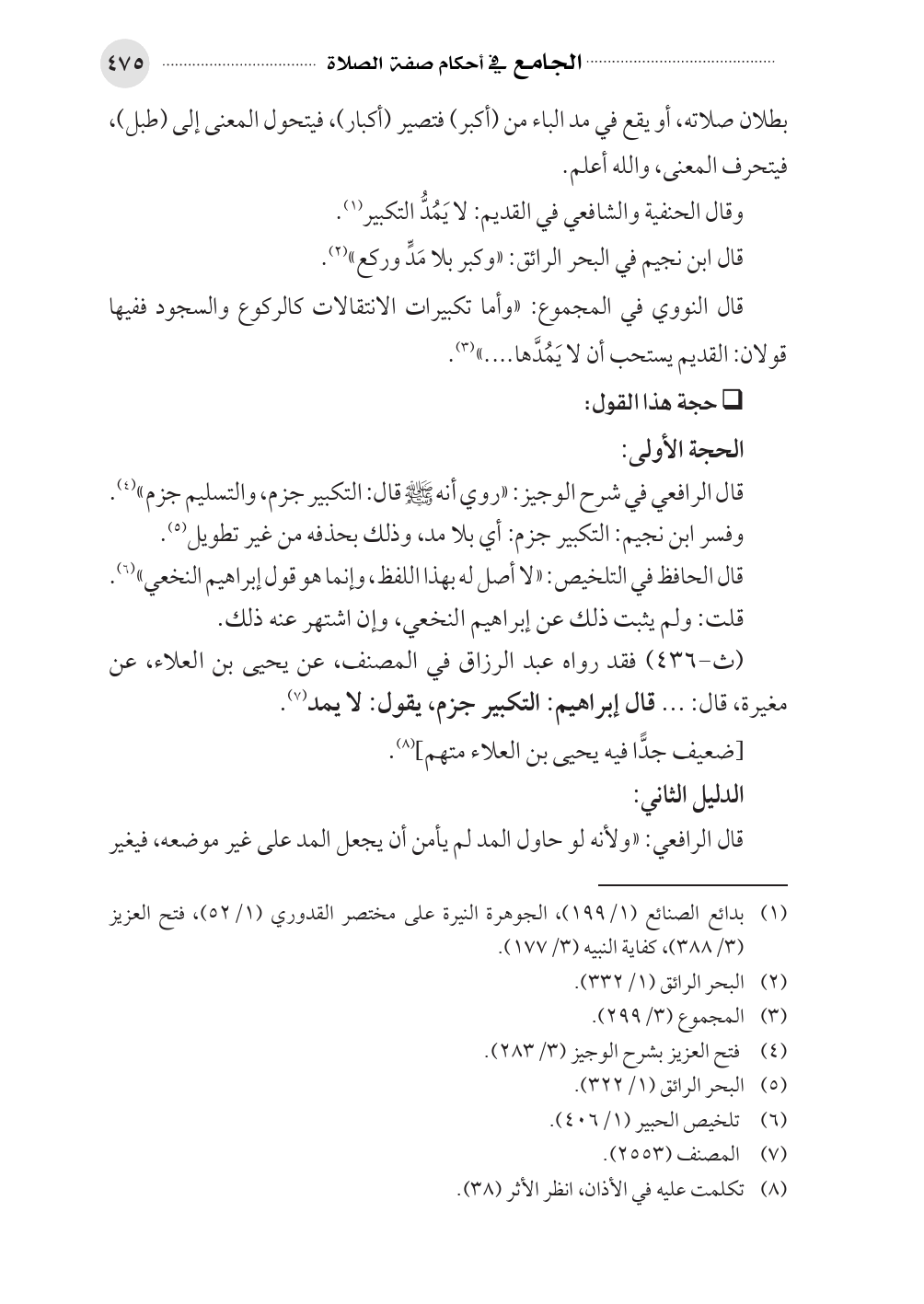 (ث-٤٣٦) فقد رواه عبد الرزاق في المصنف، عن يحيى بن العلاء، عن مغيرة، قال: ... قال إبراهيم: التكبير جزم، يقول: لا يمد (¬٧).