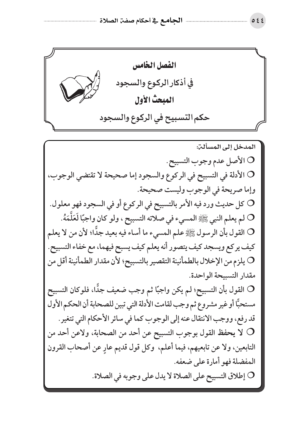 المبحث الأول حكم التسبيح في الركوع والسجود