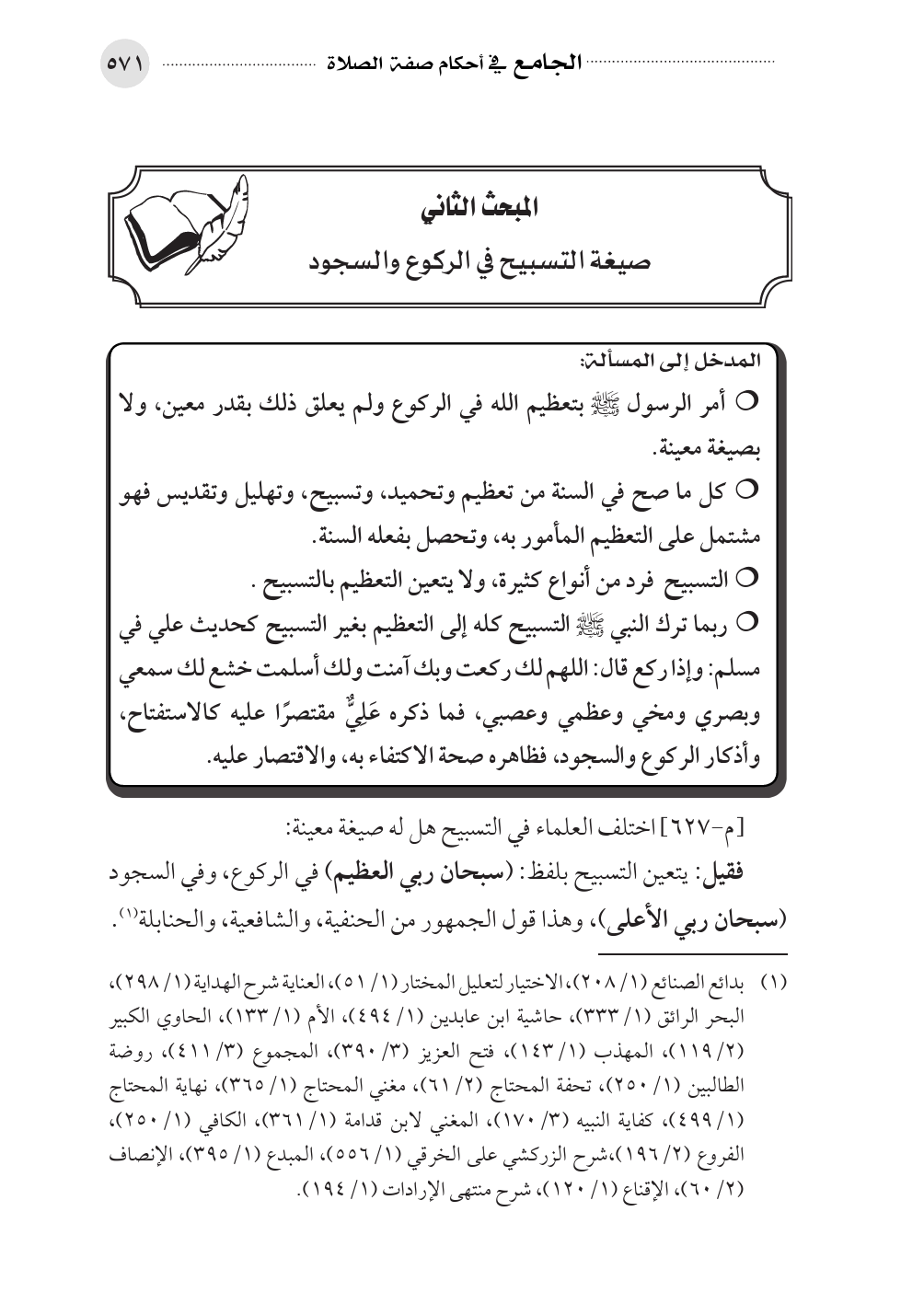 المبحث الثاني صيغة التسبيح في الركوع والسجود