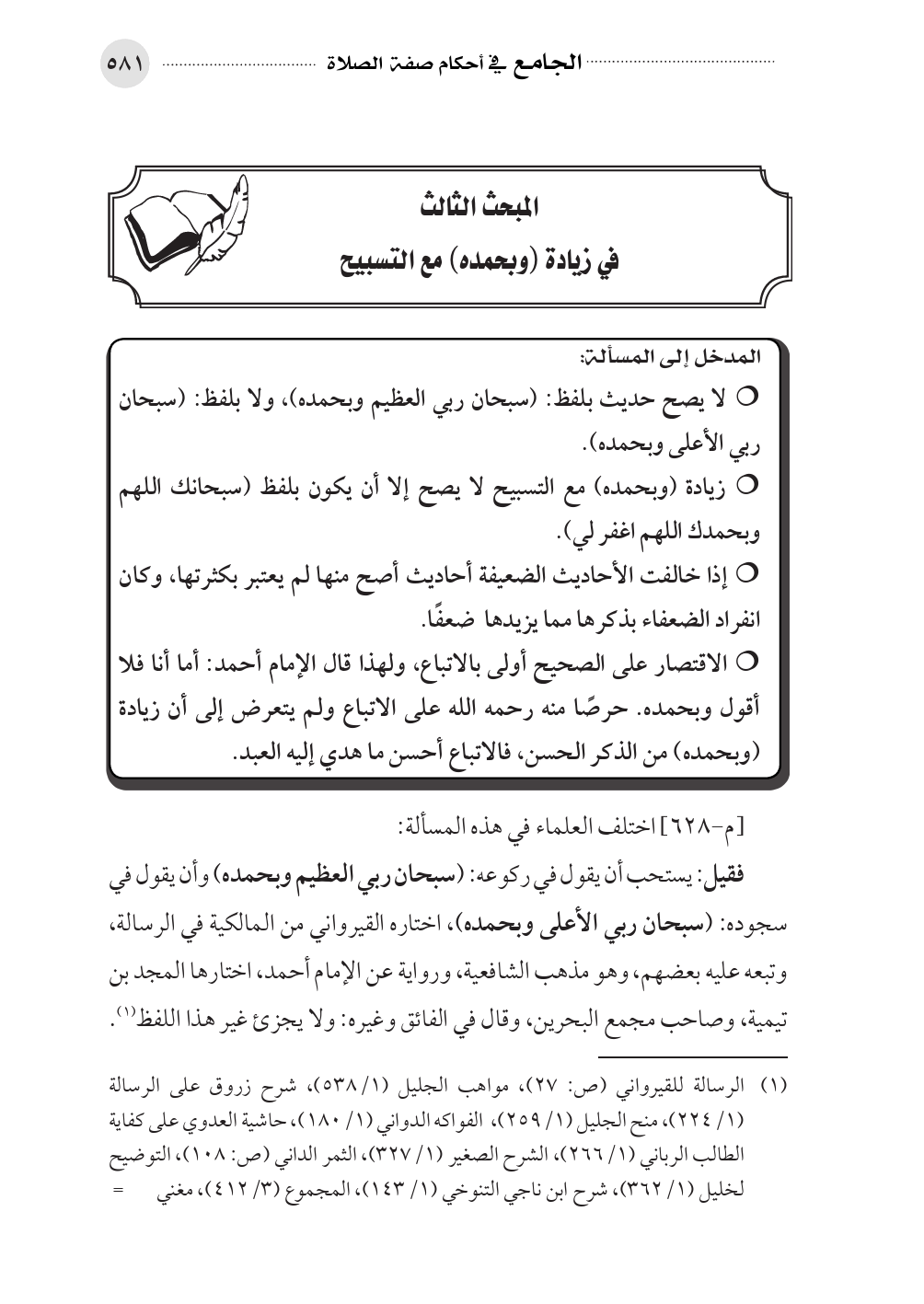 المبحث الثالث في زيادة (وبحمده) مع التسبيح