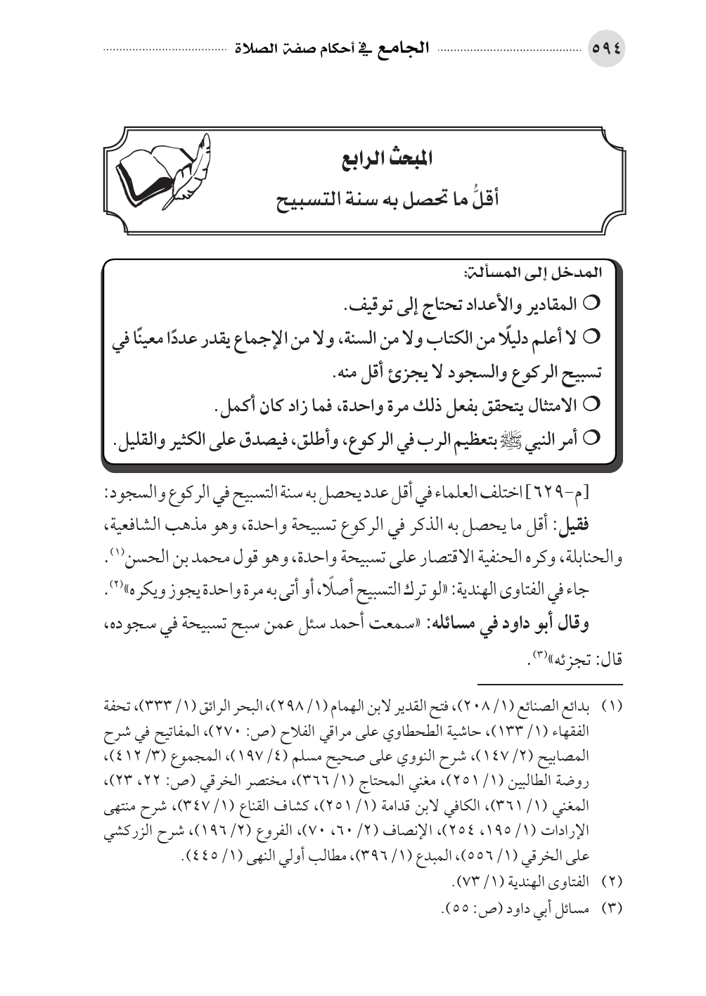 المبحث الرابع أقل ما تحصل به سنة التسبيح