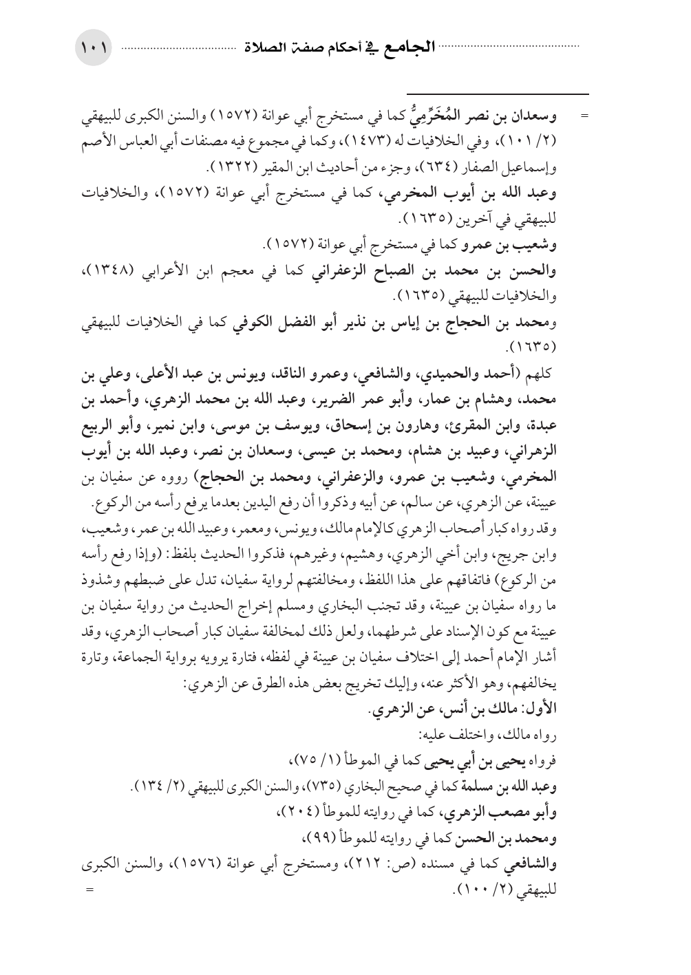كلهم (أحمد والحميدي، والشافعي، وعمرو الناقد، ويونس بن عبد الأعلى، وعلي بن محمد، وهشام بن عمار، وأبو عمر الضرير، وعبد الله بن محمد الزهري، وأحمد بن عبدة، وابن المقرئ، وهارون بن إسحاق، ويوسف بن موسى، وابن نمير، وأبو الربيع الزهراني، وعبيد بن هشام، ومحمد بن عيسى، وسعدان بن نصر، وعبد الله بن أيوب المخرمي، وشعيب بن عمرو، والزعفراني، ومحمد بن الحجاج) رووه عن سفيان بن عيينة، عن الزهري، عن سالم، عن أبيه وذكروا أن رفع اليدين بعدما يرفع رأسه من الركوع.