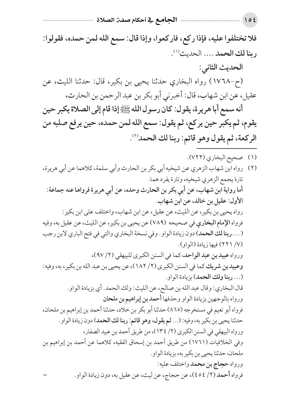 فرواه الإمام البخاري في صحيحه (٧٨٩) عن يحيى بن بكير، عن الليث، عن عقيل به، وفيه ( .... ربنا لك الحمد) دون زيادة الواو. وفي نسخة البخاري والتي في فتح الباري لابن رجب (٧/ ٢٢١) فيها زيادة (الواو).