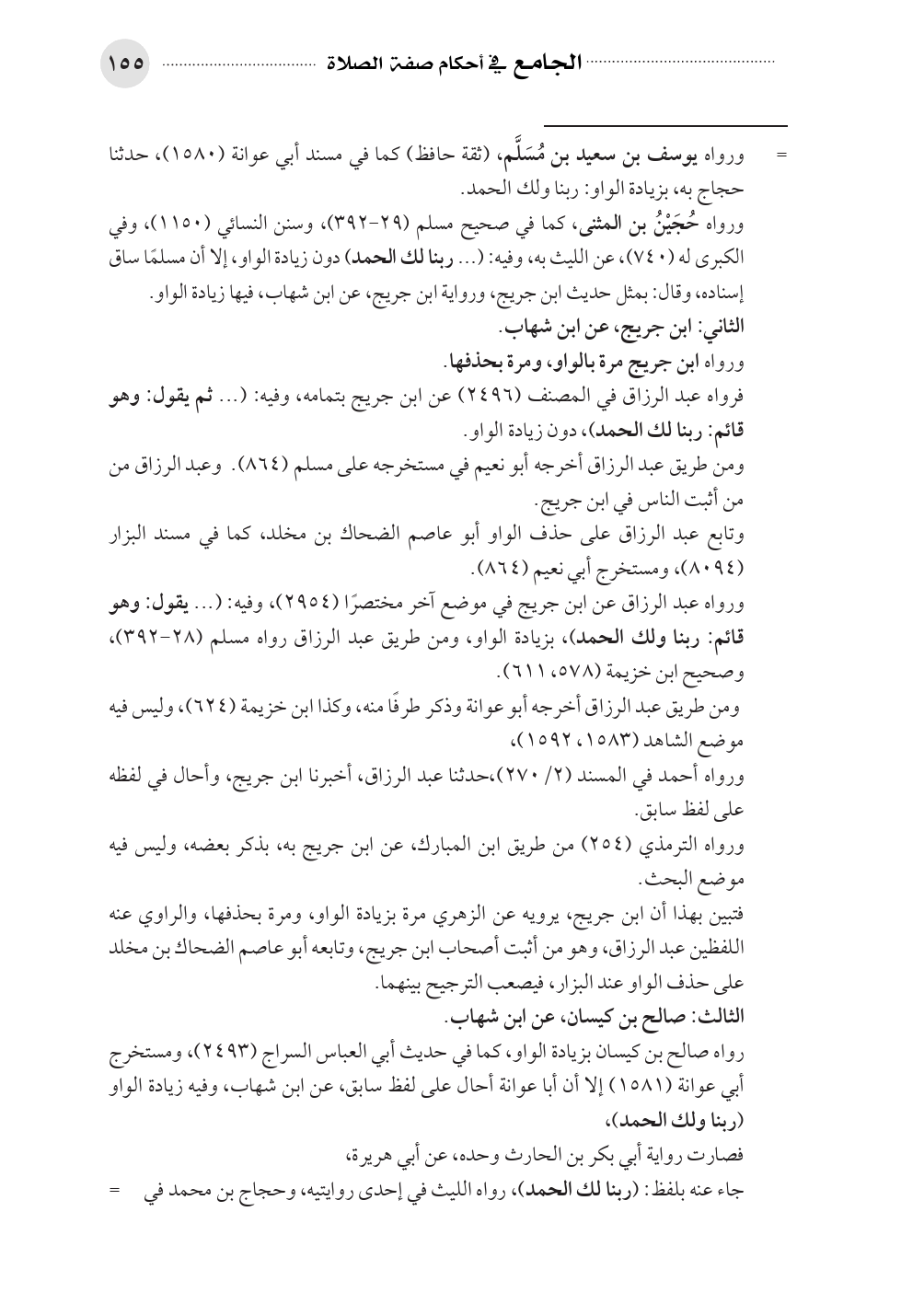 رواه صالح بن كيسان بزيادة الواو، كما في حديث أبي العباس السراج (٢٤٩٣)، ومستخرج أبي عوانة (١٥٨١) إلا أن أبا عوانة أحال على لفظ سابق، عن ابن شهاب، وفيه زيادة الواو (ربنا ولك الحمد)،