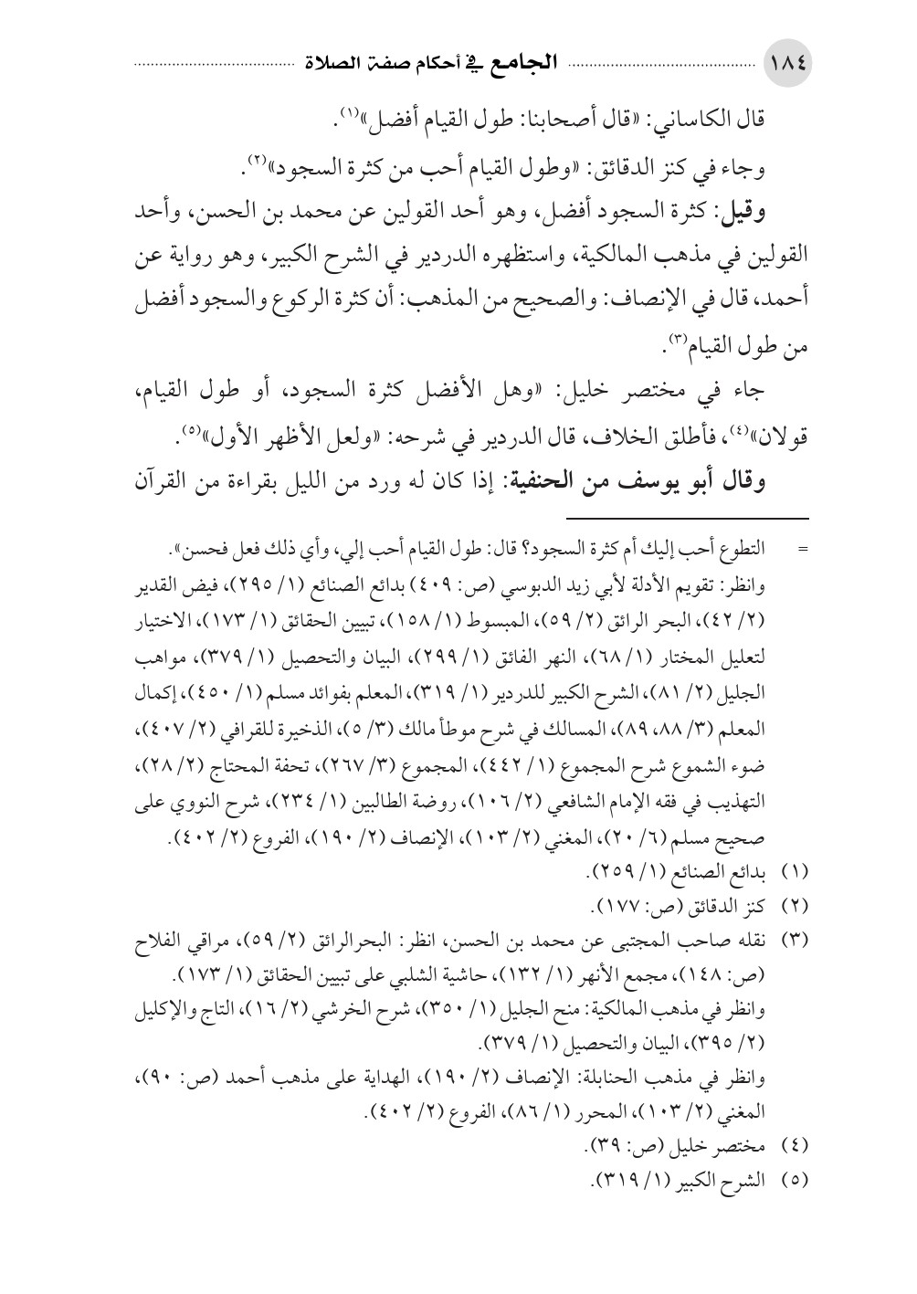جاء في مختصر خليل: «وهل الأفضل كثرة السجود، أو طول القيام، قولان» (¬٤)، فأطلق الخلاف، قال الدردير في شرحه: «ولعل الأظهر الأول» (¬٥).