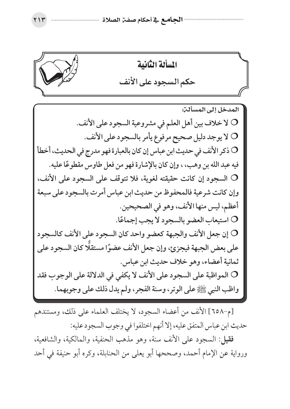 • لا خلاف بين أهل العلم في مشروعية السجود على الأنف.