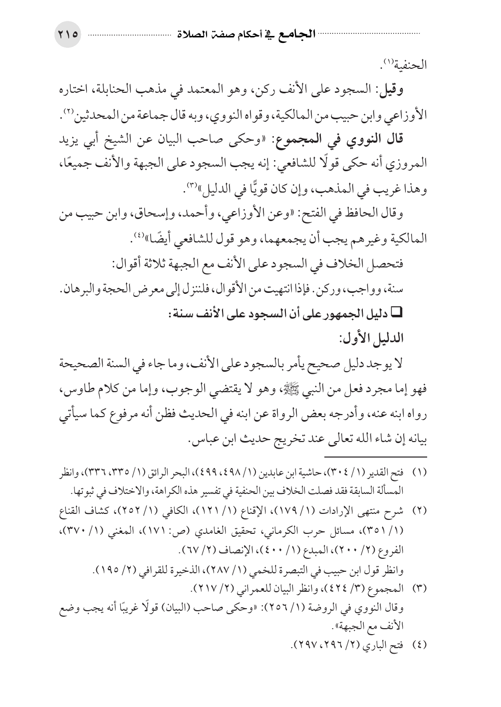• دليل الجمهور على أن السجود على الأنف سنة: