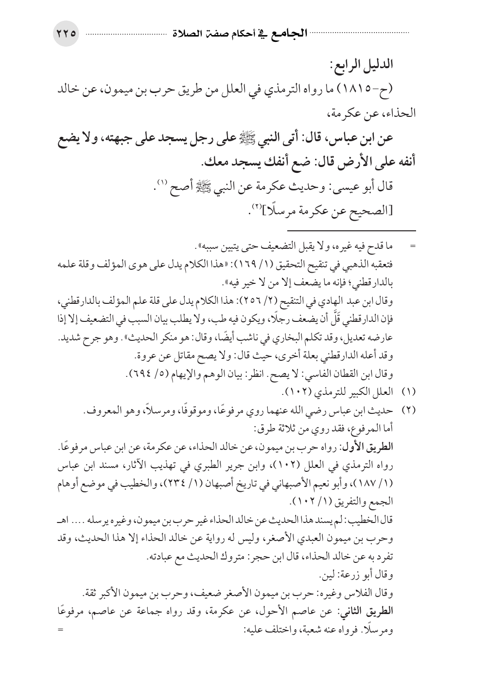 (ح-١٨١٥) ما رواه الترمذي في العلل من طريق حرب بن ميمون، عن خالد الحذاء، عن عكرمة،