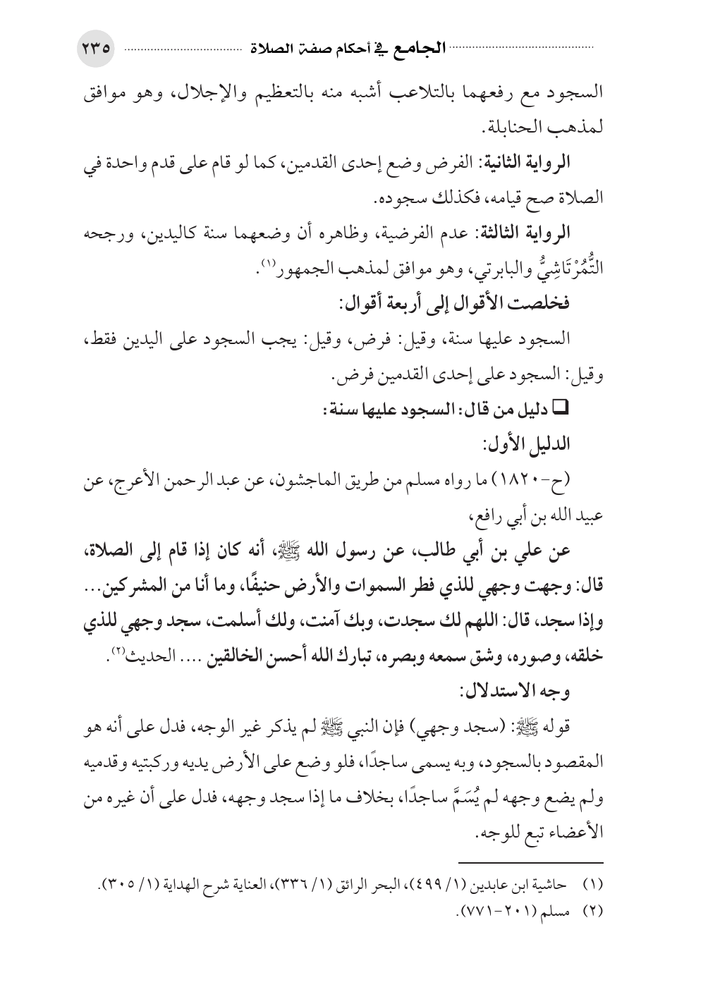 (¬١). حاشية ابن عابدين (١/ ٤٩٩)، البحر الرائق (١/ ٣٣٦)، العناية شرح الهداية (١/ ٣٠٥).