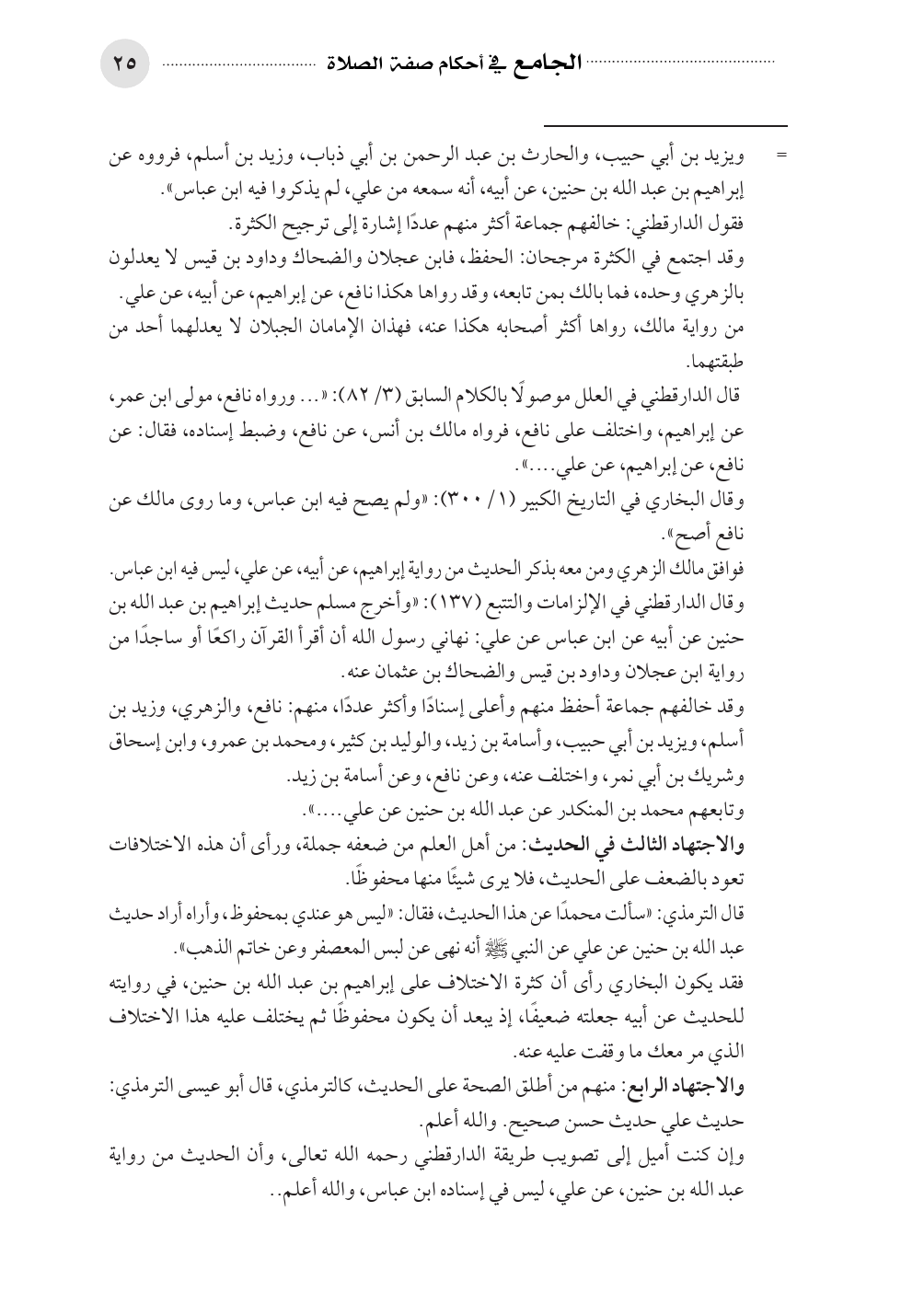 وإن كنت أميل إلى تصويب طريقة الدارقطني رحمه الله تعالى، وأن الحديث من رواية عبد الله بن حنين، عن علي، ليس في إسناده ابن عباس، والله أعلم.