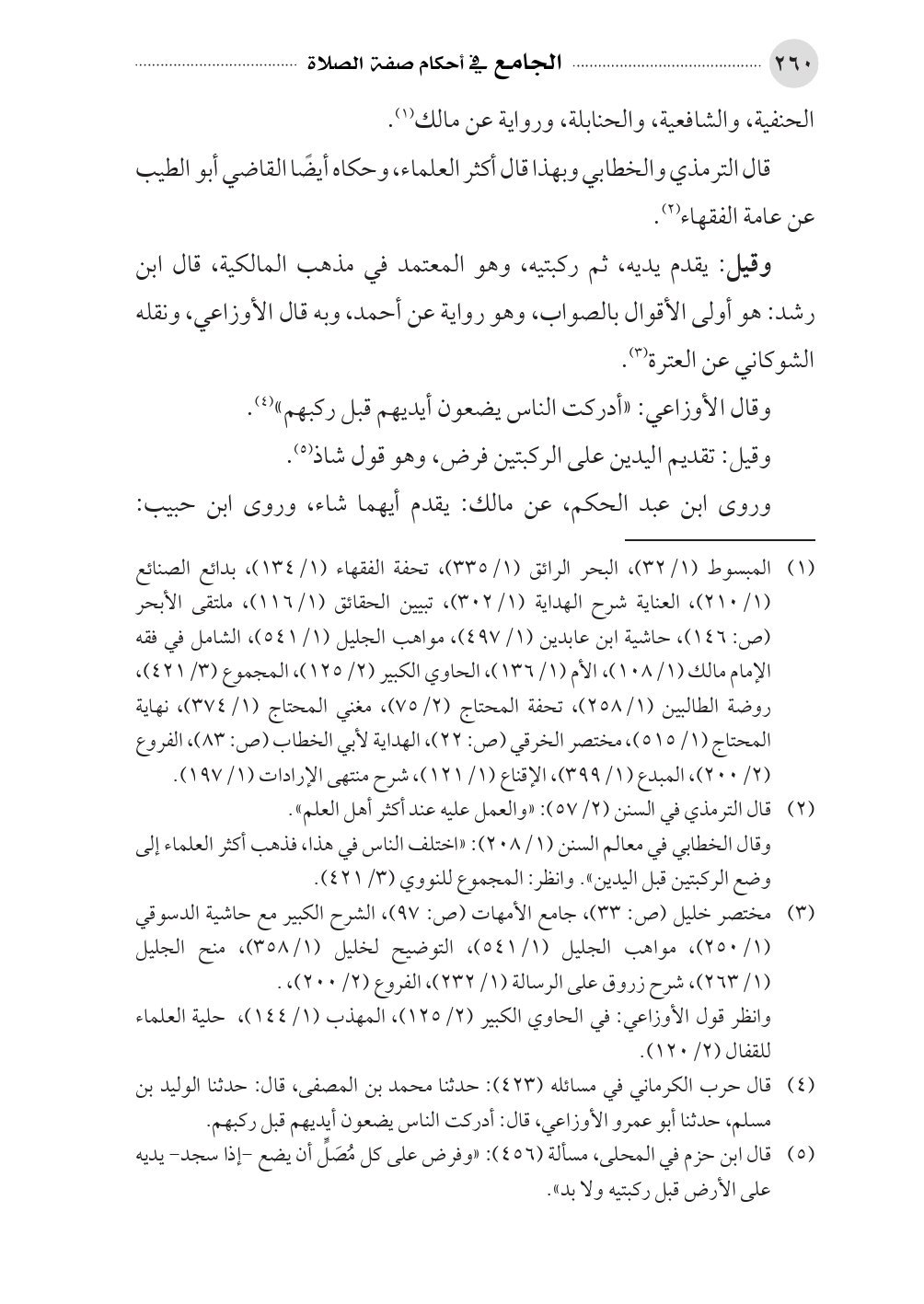 (¬٤). قال حرب الكرماني في مسائله (٤٢٣): حدثنا محمد بن المصفى، قال: حدثنا الوليد بن مسلم، حدثنا أبو عمرو الأوزاعي، قال: أدركت الناس يضعون أيديهم قبل ركبهم.