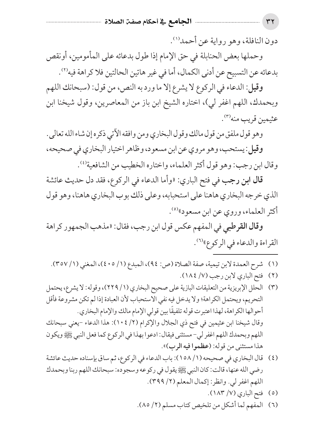 (¬١). شرح العمدة لابن تيمية، صفة الصلاة (ص: ٩٤)، المبدع (١/ ٤٠٥)، المغني (١/ ٣٥٧).