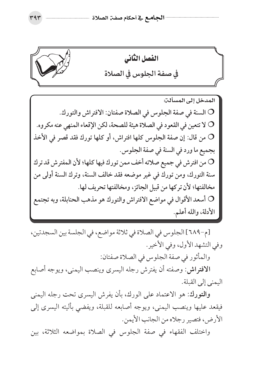 الفصل الثاني في صفة الجلوس في الصلاة