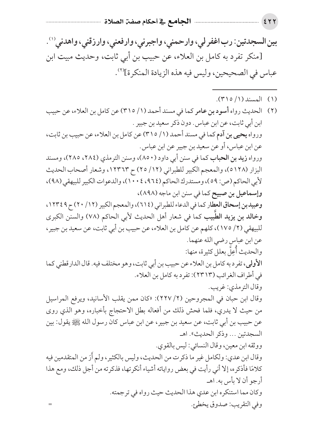 (¬٢). الحديث رواه أسود بن عامر كما في مسند أحمد (١/ ٣١٥) عن كامل بن العلاء، عن حبيب ابن أبي ثابت، عن ابن عباس. دون ذكر سعيد بن جبير.