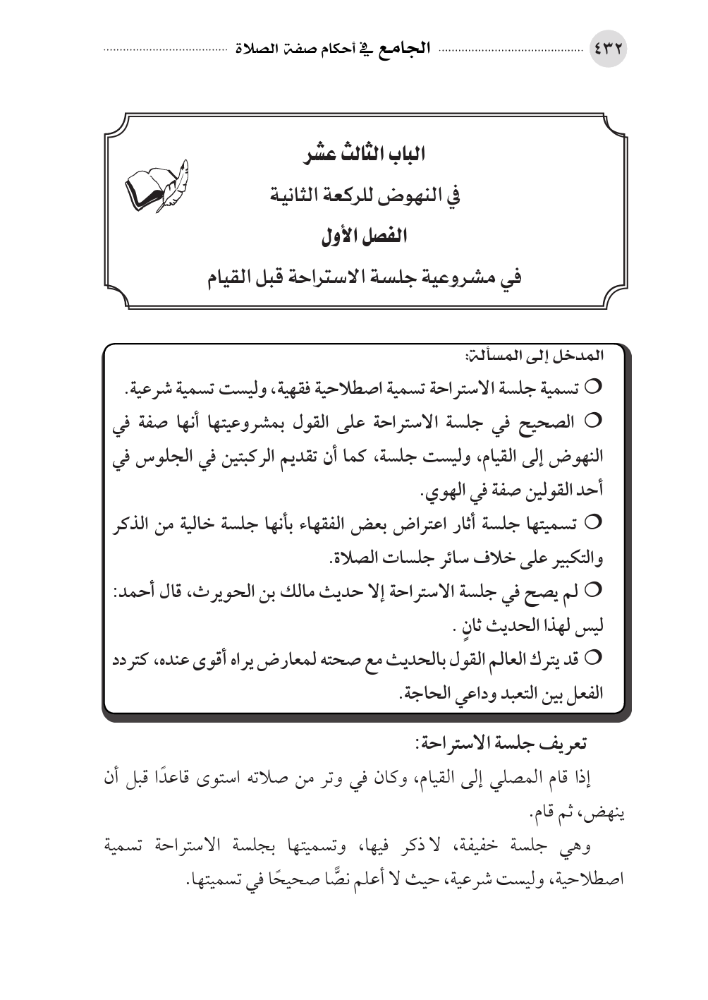 الفصل الأول في مشروعية جلسة الاستراحة قبل القيام