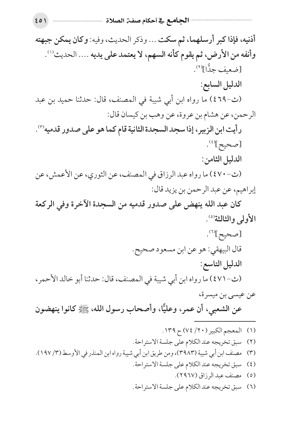 كان عبد الله ينهض على صدور قدميه من السجدة الآخرة وفي الركعة الأولى والثالثة (¬٥).