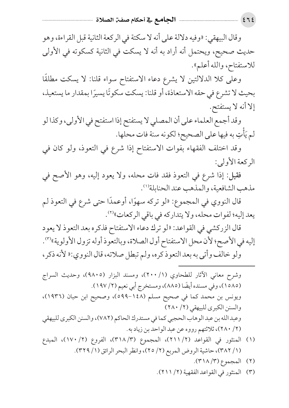 وقال البيهقي: «وفيه دلالة على أنه لا سكتة في الركعة الثانية قبل القراءة، وهو حديث صحيح، ويحتمل أنه أراد به أنه لا يسكت في الثانية كسكوته في الأولى للاستفتاح، والله أعلم».