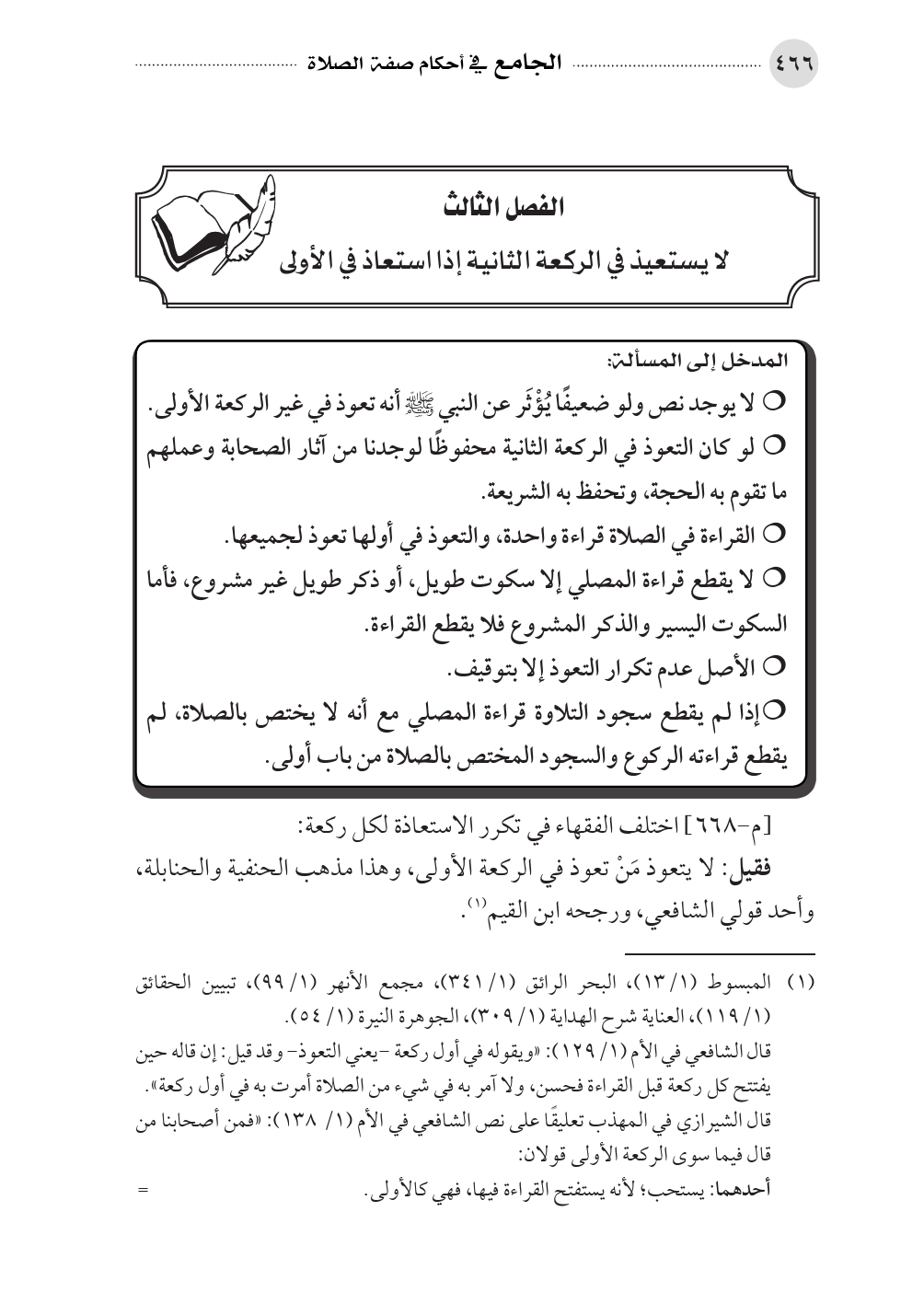 الفصل الثالث لا يستعيذ في الركعة الثانية إذا استعاذ في الركعة الأولى