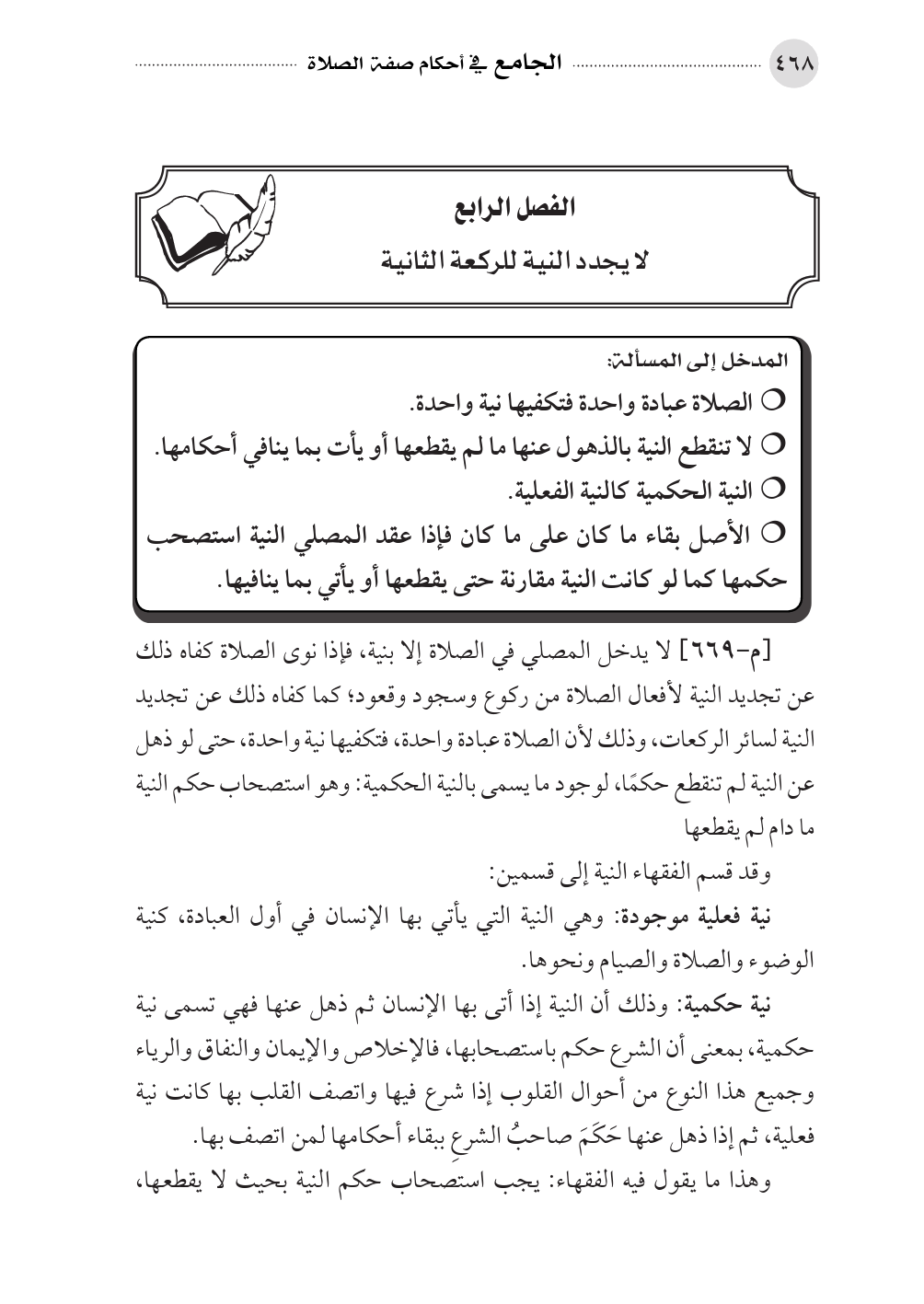 الفصل الرابع لا يجدد النية للركعة الثانية