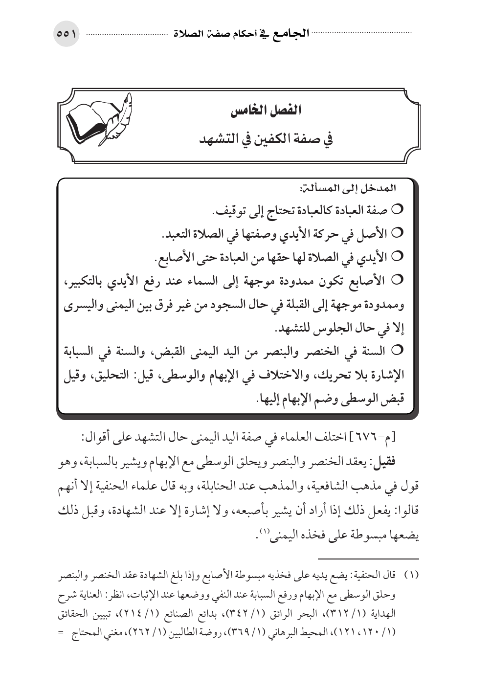 الفصل الخامس في صفة الكفين في التشهد
