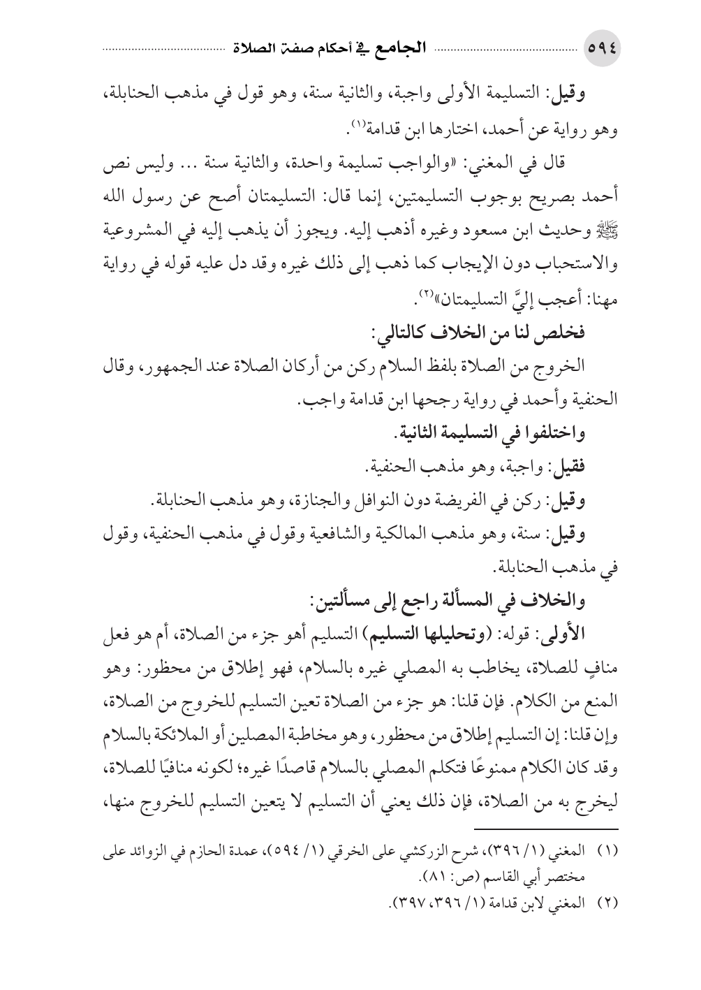 (¬١). المغني (١/ ٣٩٦)، شرح الزركشي على الخرقي (١/ ٥٩٤)، عمدة الحازم في الزوائد على مختصر أبي القاسم (ص: ٨١).