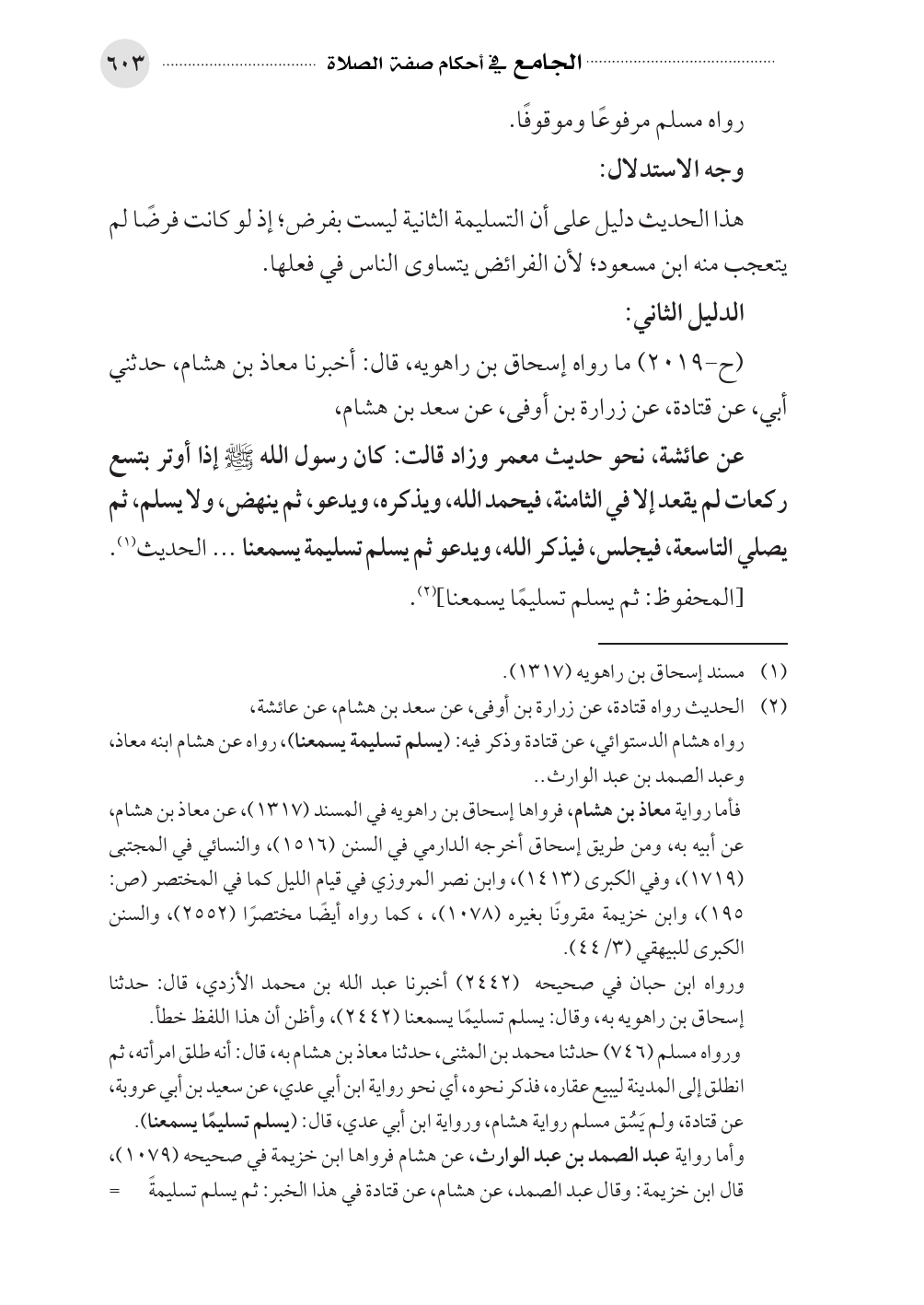 (ح-٢٠١٩) ما رواه إسحاق بن راهويه، قال: أخبرنا معاذ بن هشام، حدثني أبي، عن قتادة، عن زرارة بن أوفى، عن سعد بن هشام،