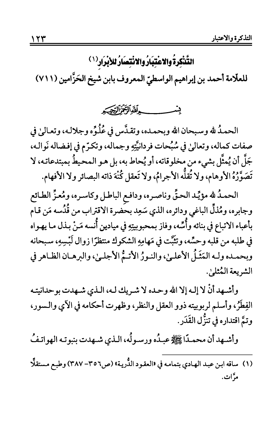 التَّذْكِرةُ والاعْتِبَارُ والانْتِصَارُ للأبْرَارِ (¬١)
