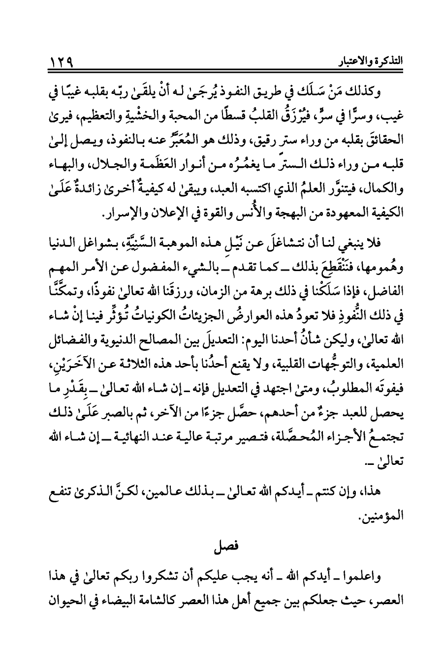 واعلموا ــ أيدكم الله ــ أنه يجب عليكم أن تشكروا ربكم تعالى في هذا العصر، حيث جعلكم بين جميع أهل هذا العصر كالشامة البيضاء في الحيوان