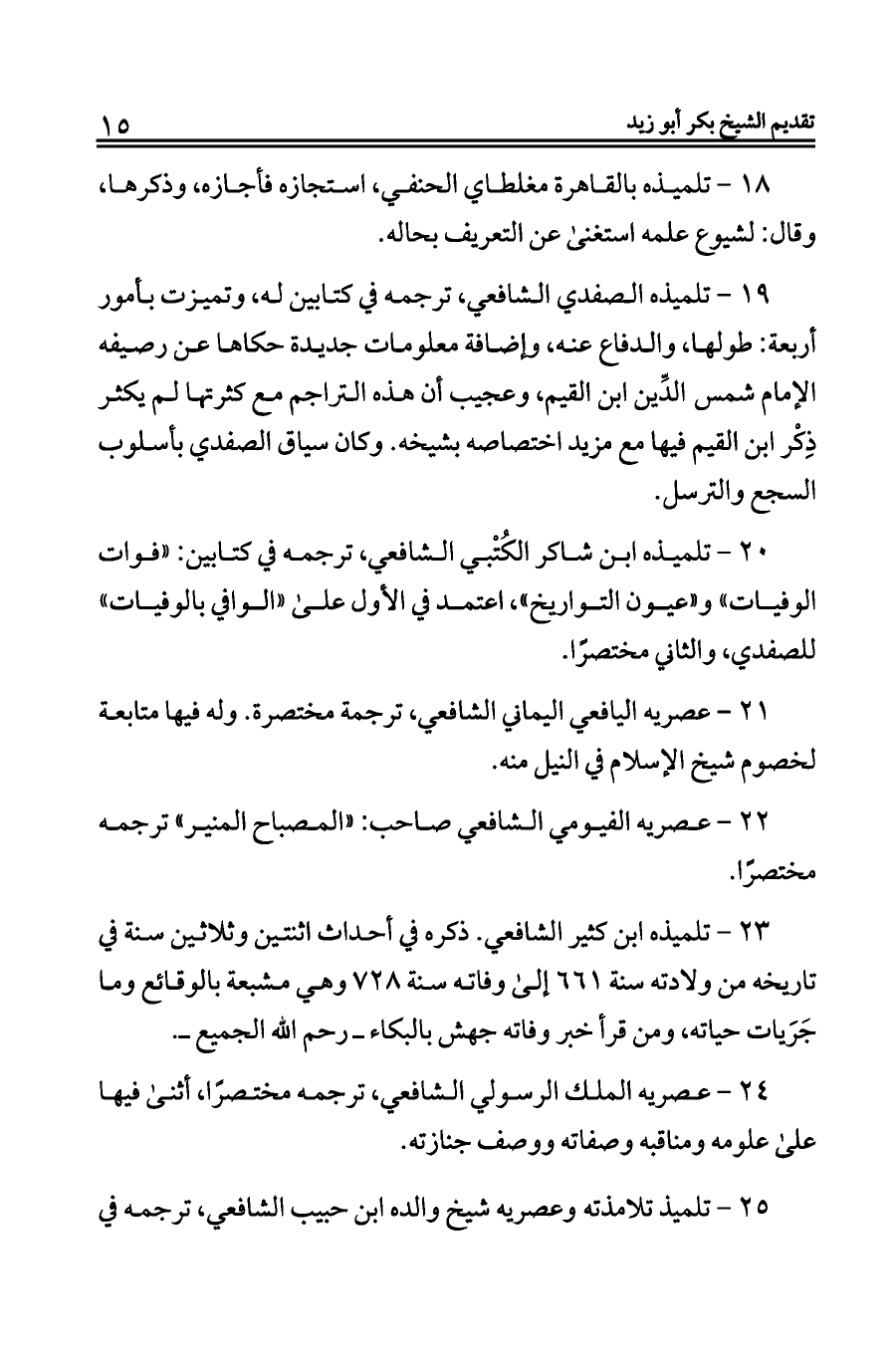 ٢٥ - تلميذ تلامذته وعصريه شيخ والده ابن حبيب الشافعي، ترجمه في