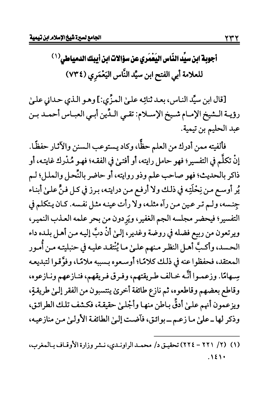 (¬١). (٢/ ٢٢١ - ٢٢٤) تحقيق د/ محمد الراوندي، نشر وزارة الأوقاف بالمغرب، ١٤١٠.