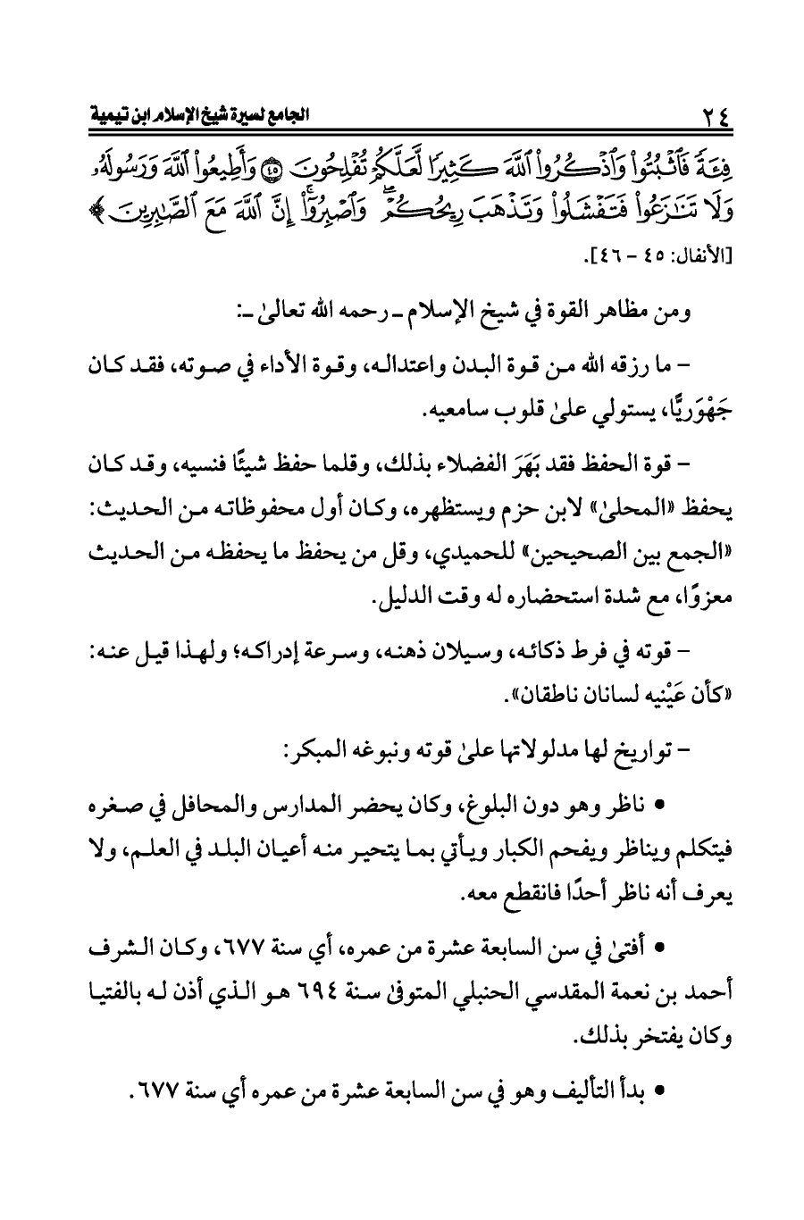 ومن مظاهر القوة في شيخ الإسلام ــ رحمه الله تعالى ــ: