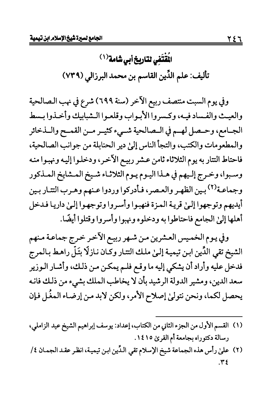(¬٢). على رأس هذه الجماعة شيخ الإسلام تقي الدِّين ابن تيمية، انظر عقد الجمان ٤/ ٣٤.