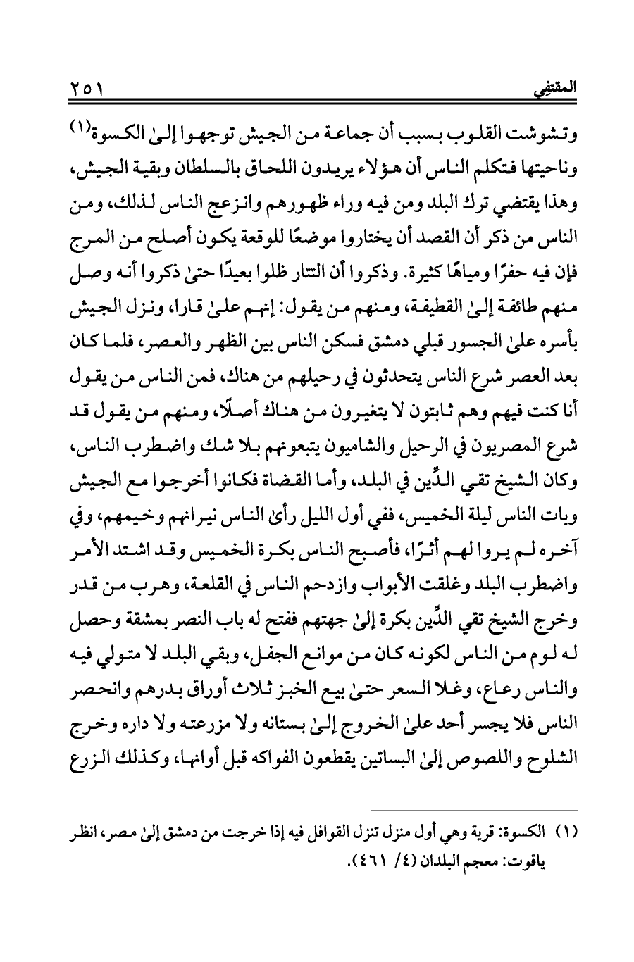 (¬١). الكسوة: قرية وهي أول منزل تنزل القوافل فيه إذا خرجت من دمشق إلى مصر، انظر ياقوت: معجم البلدان (٤/ ٤٦١).
