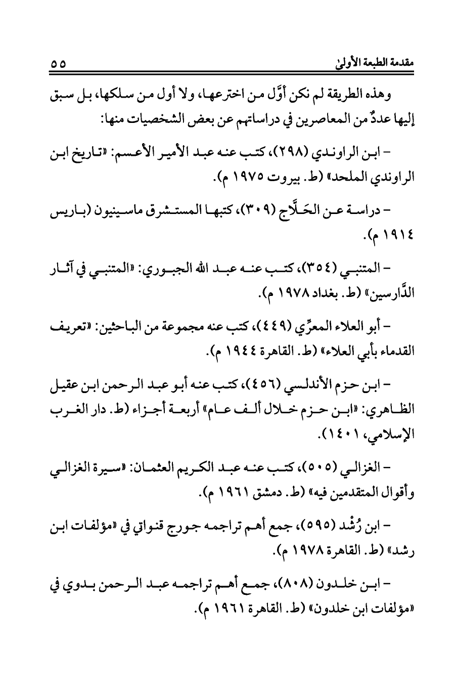 - أبو العلاء المعرِّي (٤٤٩)، كتب عنه مجموعة من الباحثين: «تعريف القدماء بأبي العلاء» (ط. القاهرة ١٩٤٤ م).