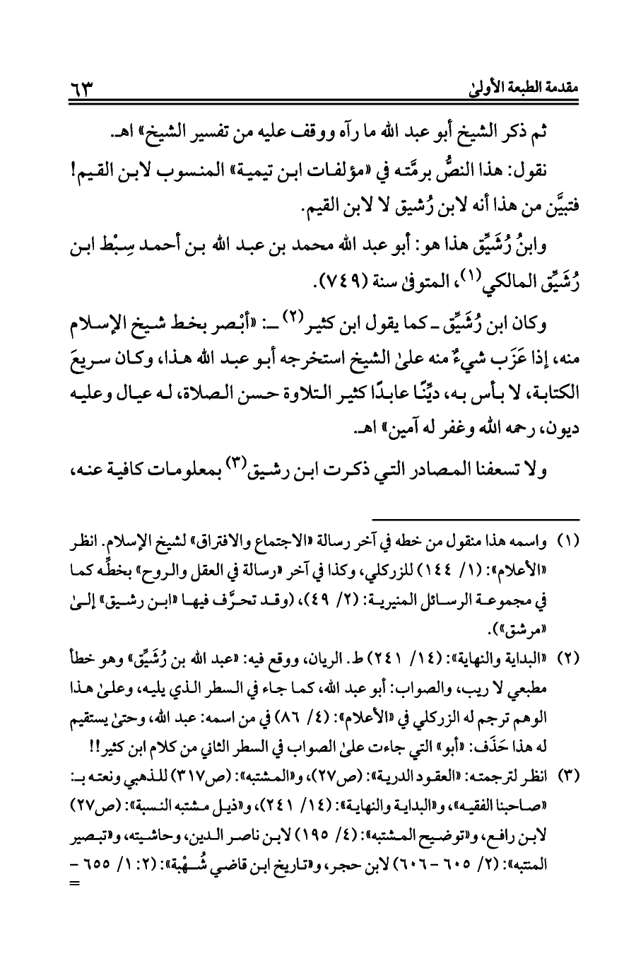(¬٢) «البداية والنهاية»: (١٤/ ٢٤١) ط. الريان، ووقع فيه: «عبد الله بن رُشَيِّق» وهو خطأ مطبعي لا ريب، والصواب: أبو عبد الله، كما جاء في السطر الذي يليه، وعلى هذا الوهم ترجم له الزركلي في «الأعلام»: (٤/ ٨٦) في من اسمه: عبد الله, وحتى يستقيم له هذا حَذَف: «أبو» التي جاءت على الصواب في السطر الثاني من كلام ابن كثير! !