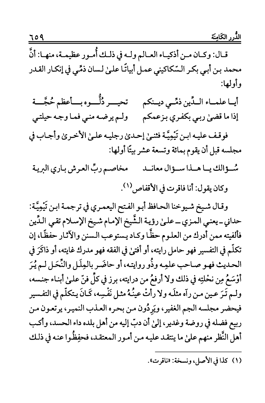 (¬١) كذا في الأصل، ونسخة: «ناقرت».