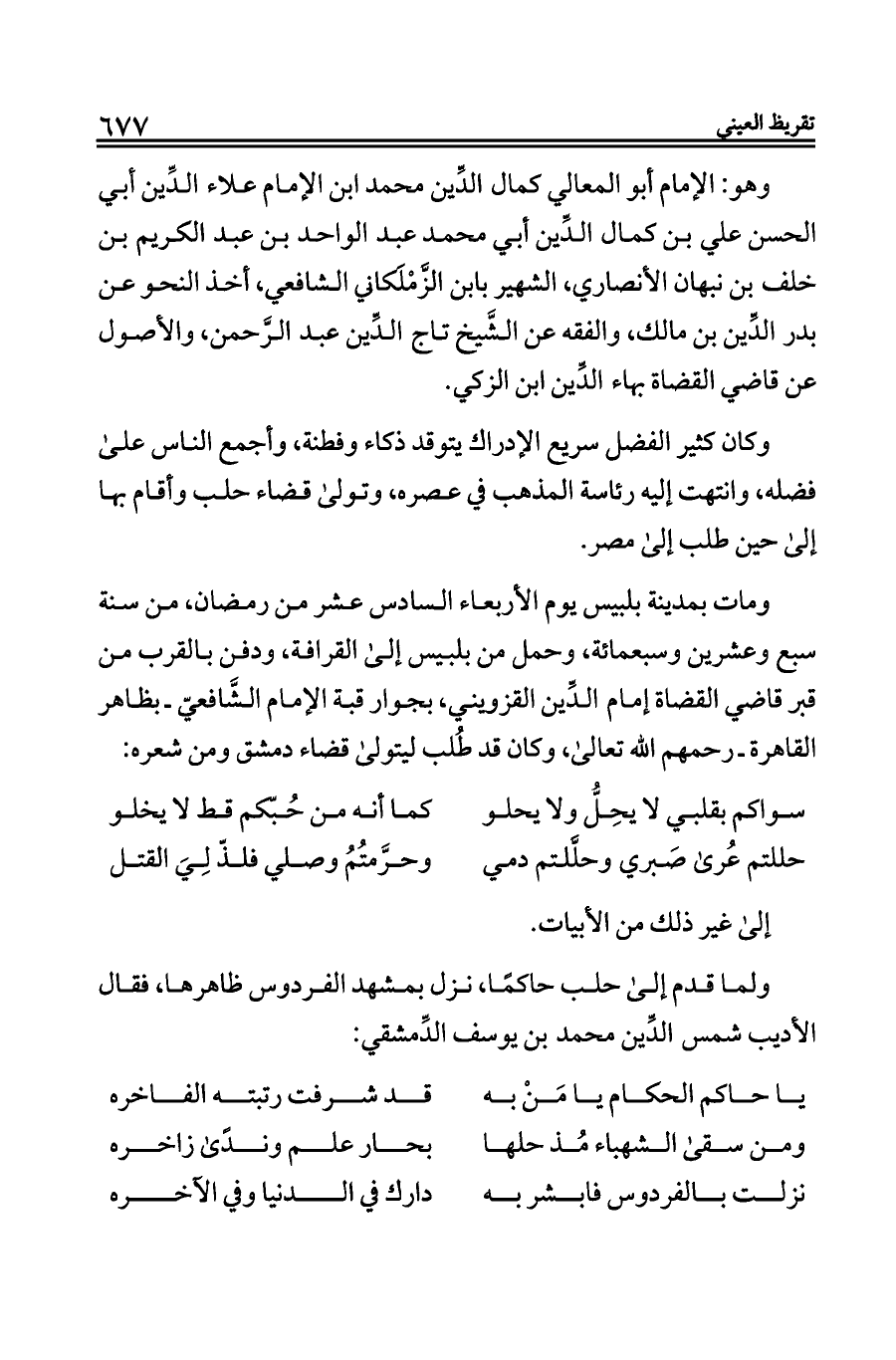 ولما قدم إلى حلب حاكمًا، نزل بمشهد الفردوس ظاهرها، فقال الأديب شمس الدِّين محمد بن يوسف الدِّمشقي: