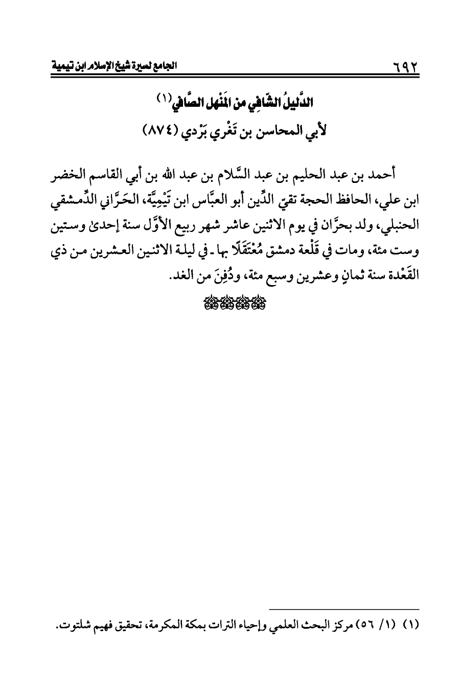 الدَّليلُ الشّافِي من المَنْهل الصَّافي (¬١)