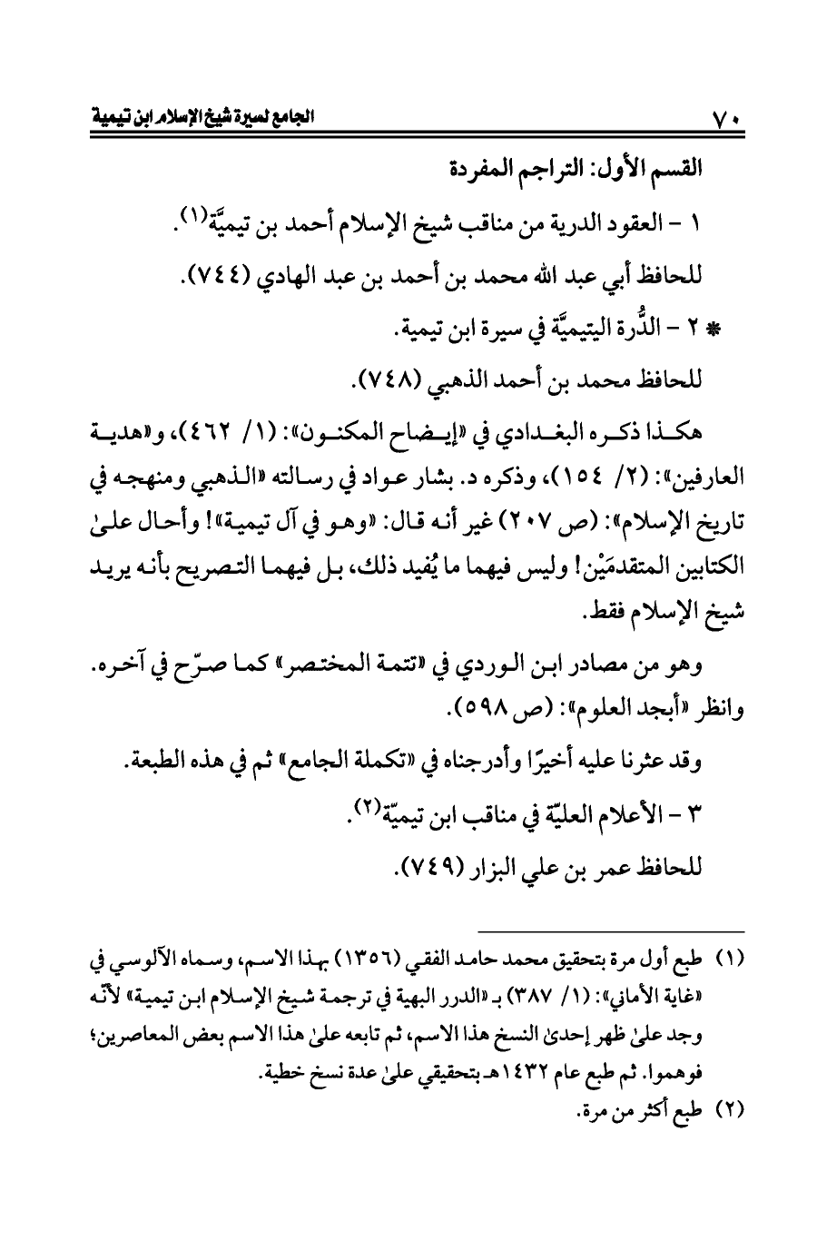 * ٢ - الدُّرة اليتيميَّة في سيرة ابن تيمية.