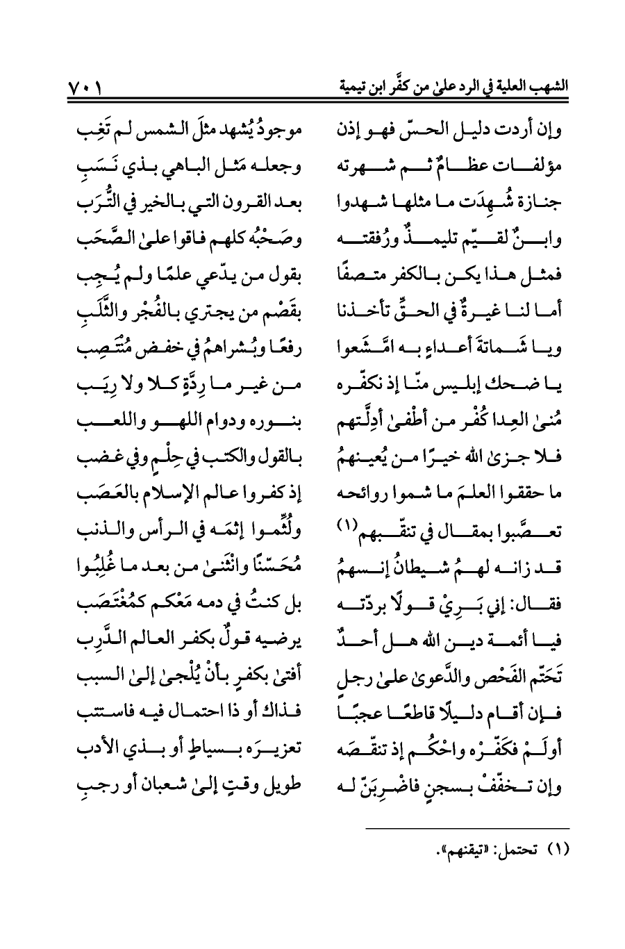 تَحَتّم الفَحْص والدَّعوى على رجلٍ ... أفتى بكفرٍ بأنْ يُلْجى إلى السبب
