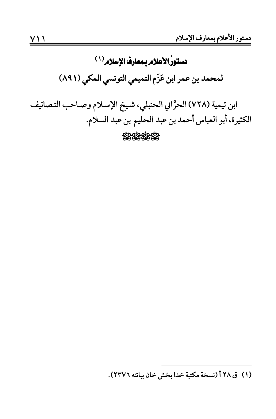 دستورُ الأعلام بمعارف الإسلام (¬١)