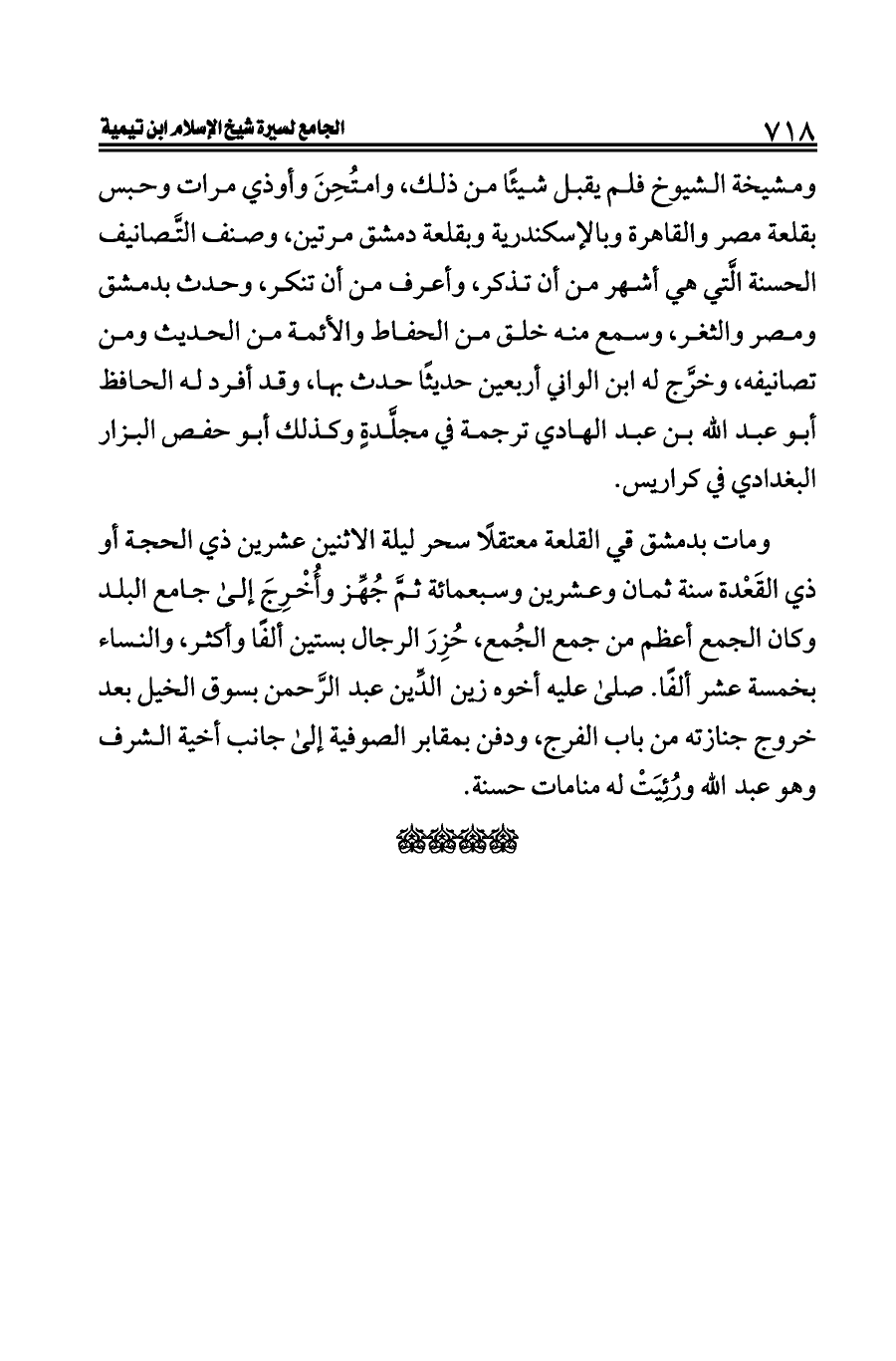 كتاب الجامع لسيرة شيخ الإسلام ابن تيمية خلال سبعة قرون وتكملة الجامع