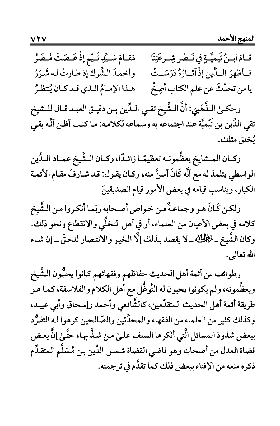 قامَ ابنُ تَيميَّةٍ في نَصْر شِرعَتِنَا ... مَقامَ سَيِّدِ تَيْمٍ إذْ عَصَتْ مُضَرُ